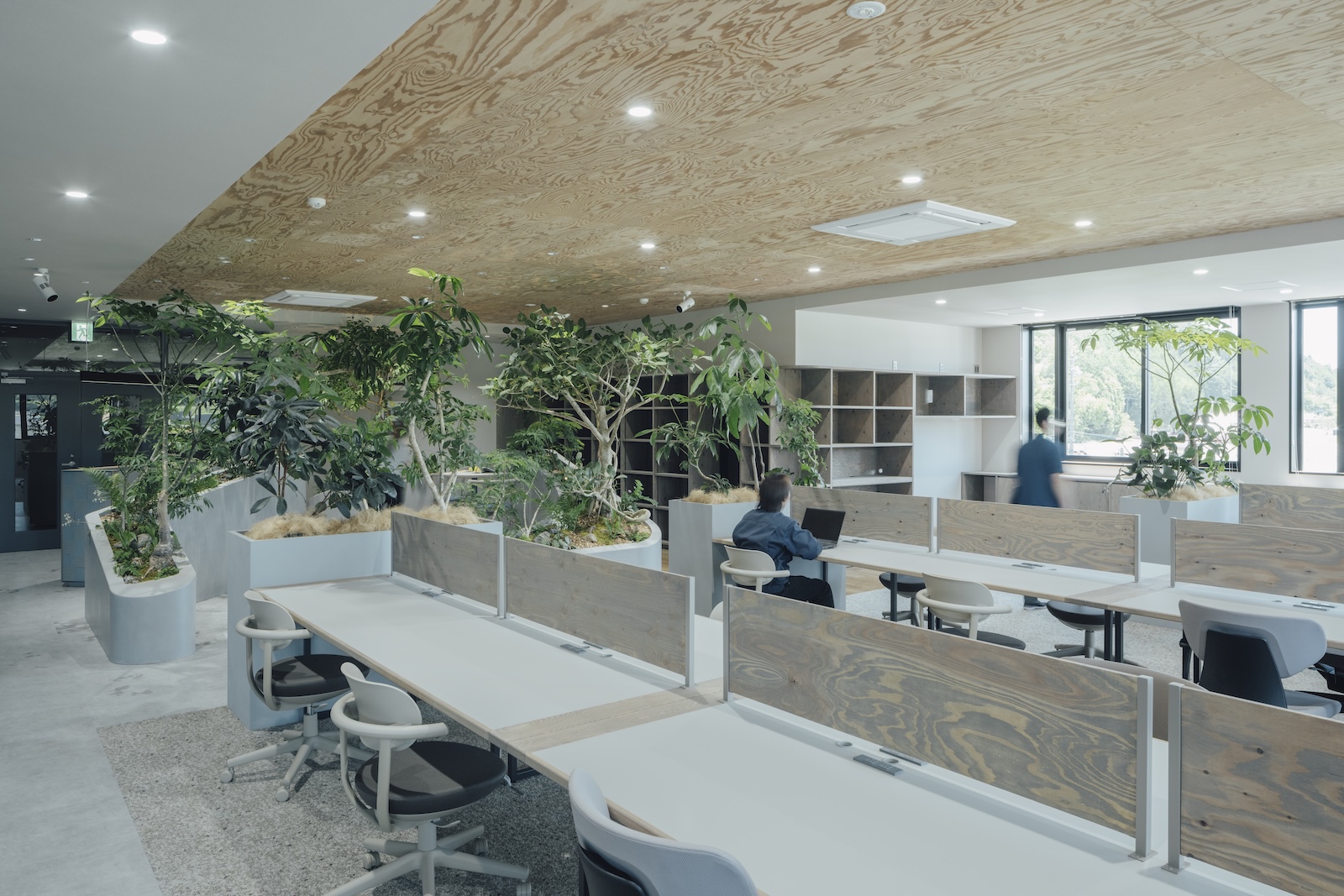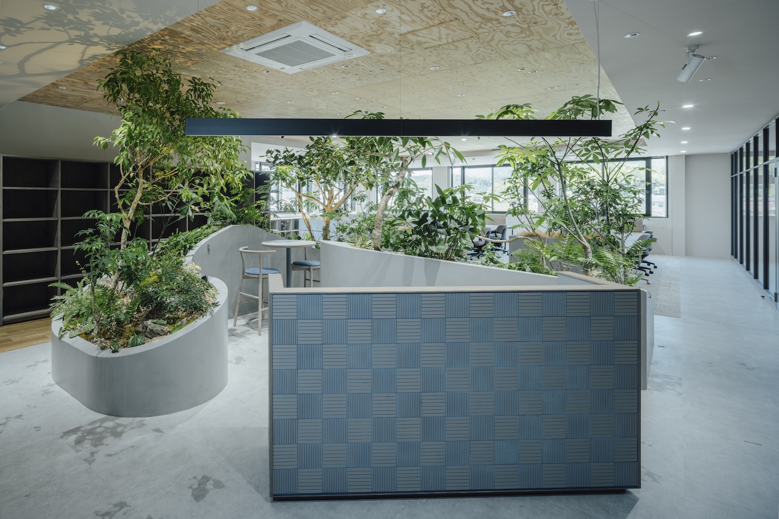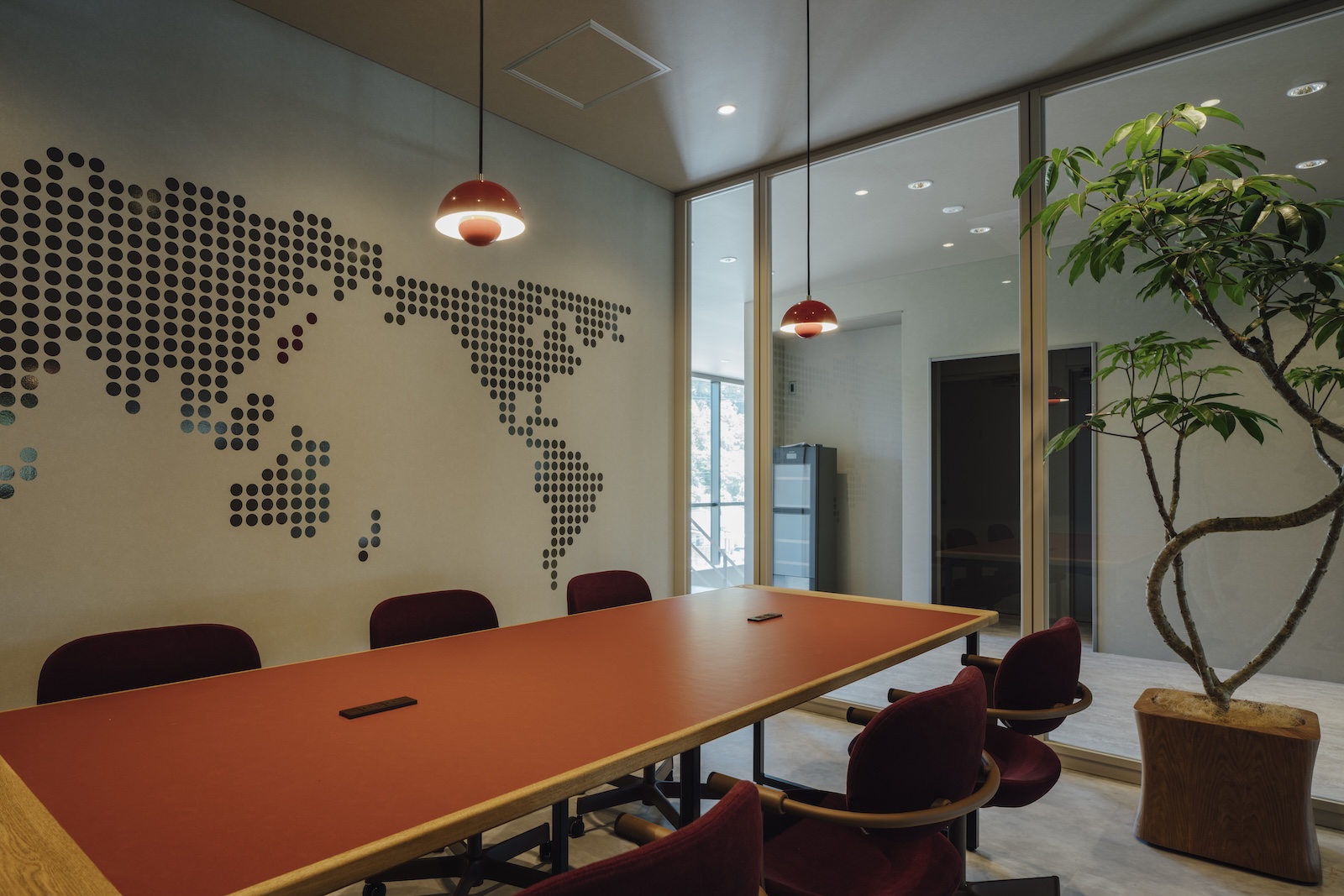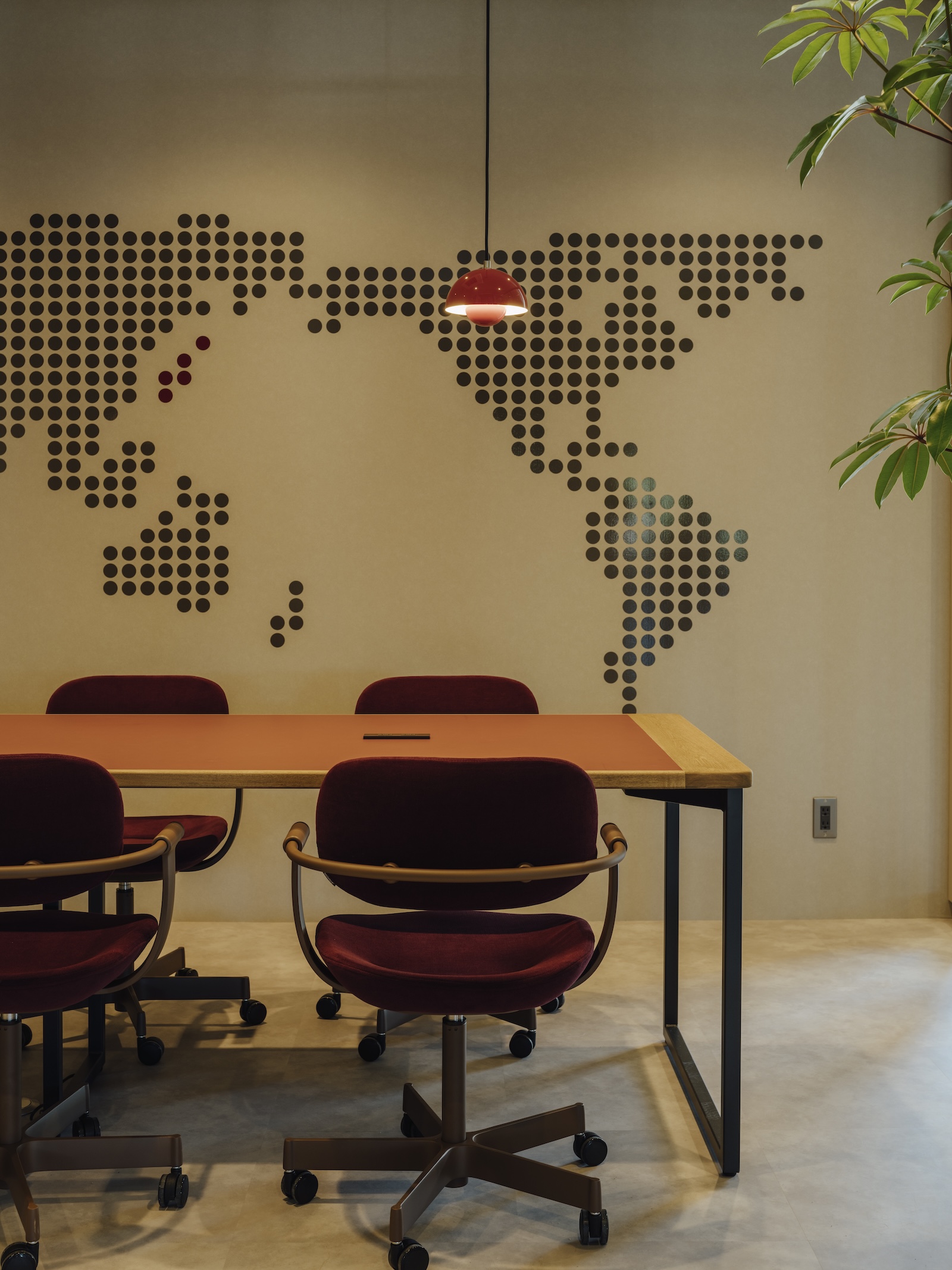 経営者の「挑戦と行動で眠りを変え、世界を変える」というビジョンを受け、広島のものづくりを世界へとつなげるためのコンセプトオフィスとしてデザイン。豊かな自然とものづくりの文化をもつ千代田町のマインドを表現し、室内に有機的なデザインの大きなプランターを設置する。ニュートラルな玄関エントランス、森に囲まれクリエイティブな気持ちになれるミーティングスペース、世界と千代田町を結ぶグラフィックと赤をメインカラーとした商談スペースなど、会社の持つ個性と挑戦をインテリアに表現した。