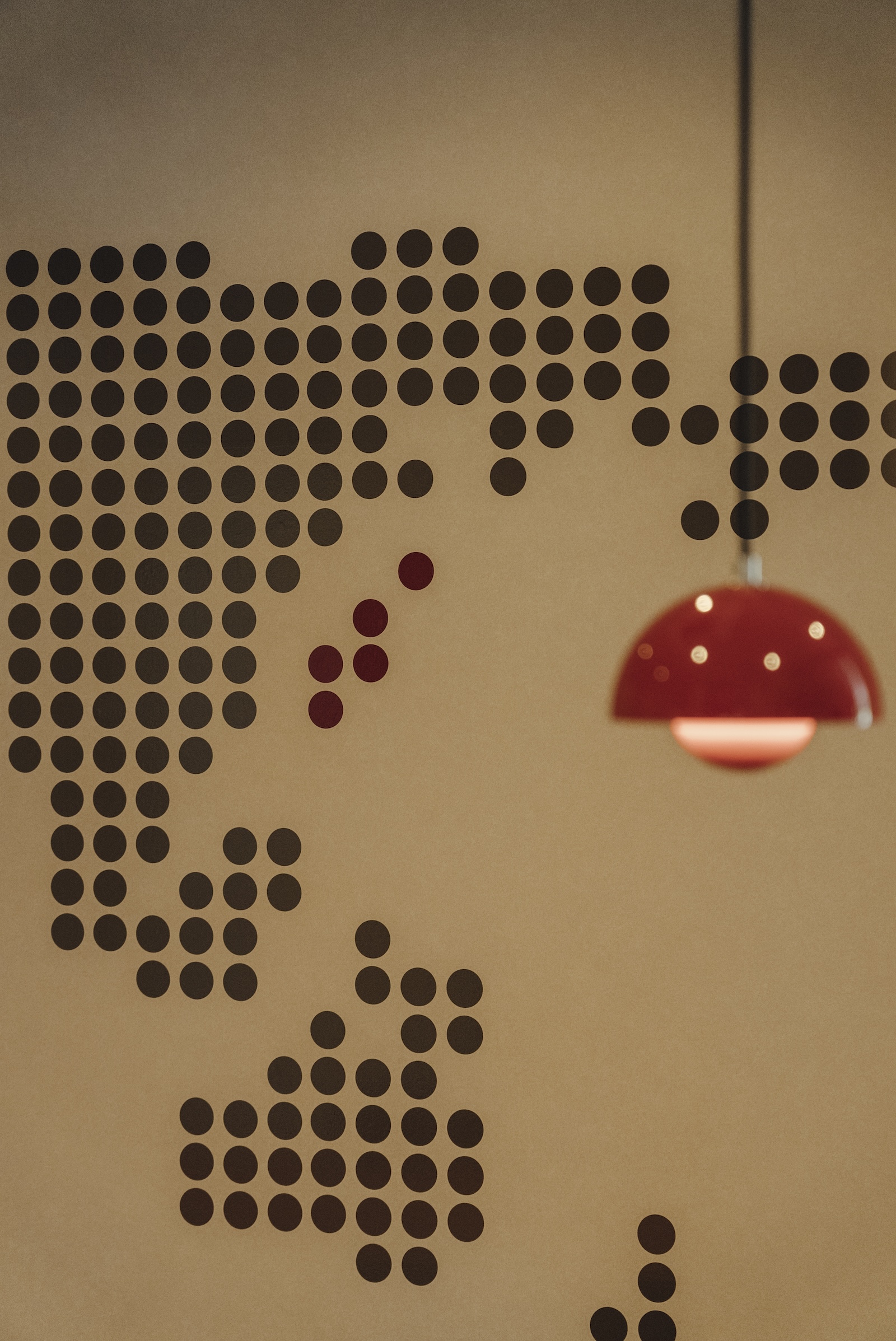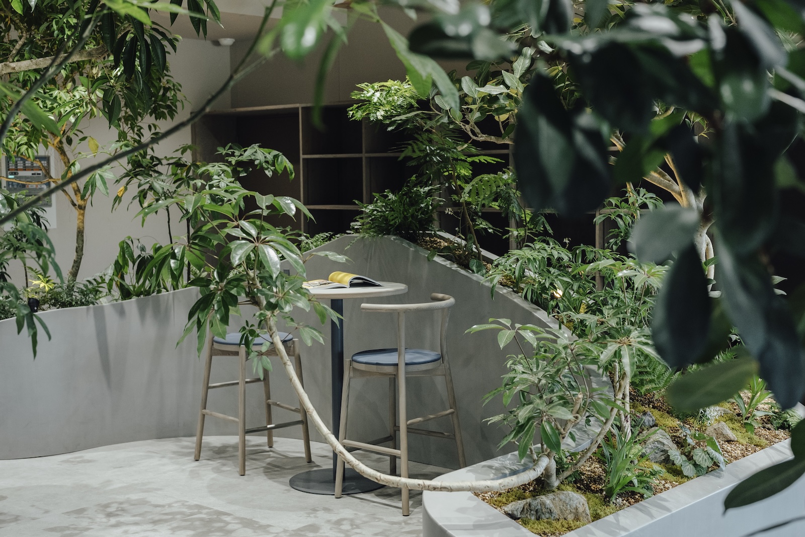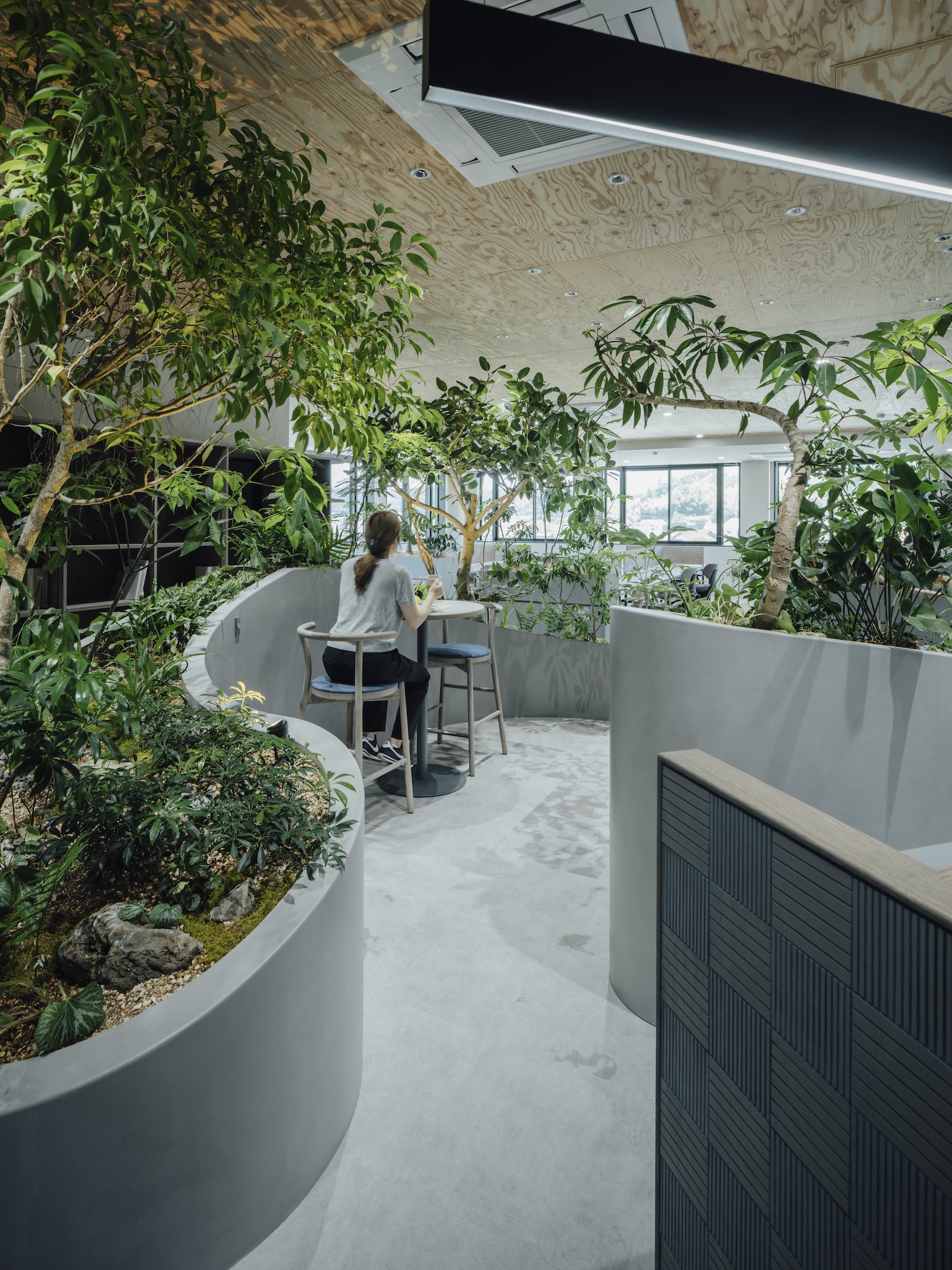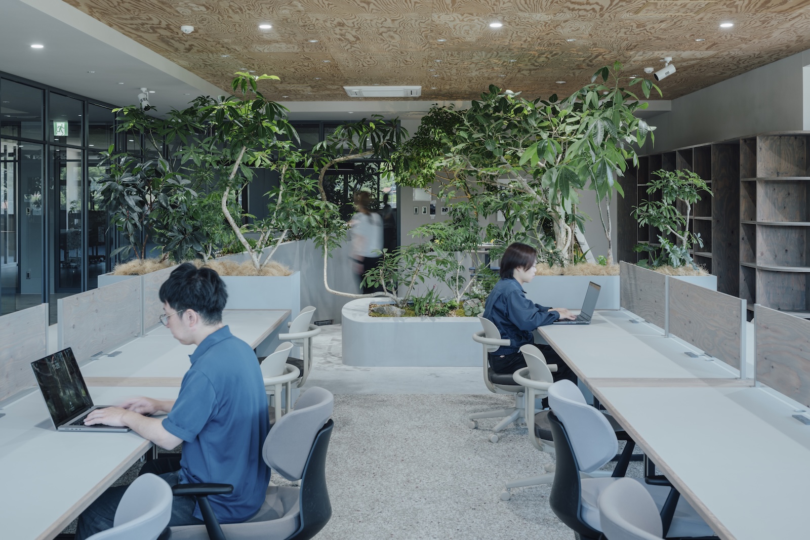経営者の「挑戦と行動で眠りを変え、世界を変える」というビジョンを受け、広島のものづくりを世界へとつなげるためのコンセプトオフィスとしてデザイン。豊かな自然とものづくりの文化をもつ千代田町のマインドを表現し、室内に有機的なデザインの大きなプランターを設置する。ニュートラルな玄関エントランス、森に囲まれクリエイティブな気持ちになれるミーティングスペース、世界と千代田町を結ぶグラフィックと赤をメインカラーとした商談スペースなど、会社の持つ個性と挑戦をインテリアに表現した。