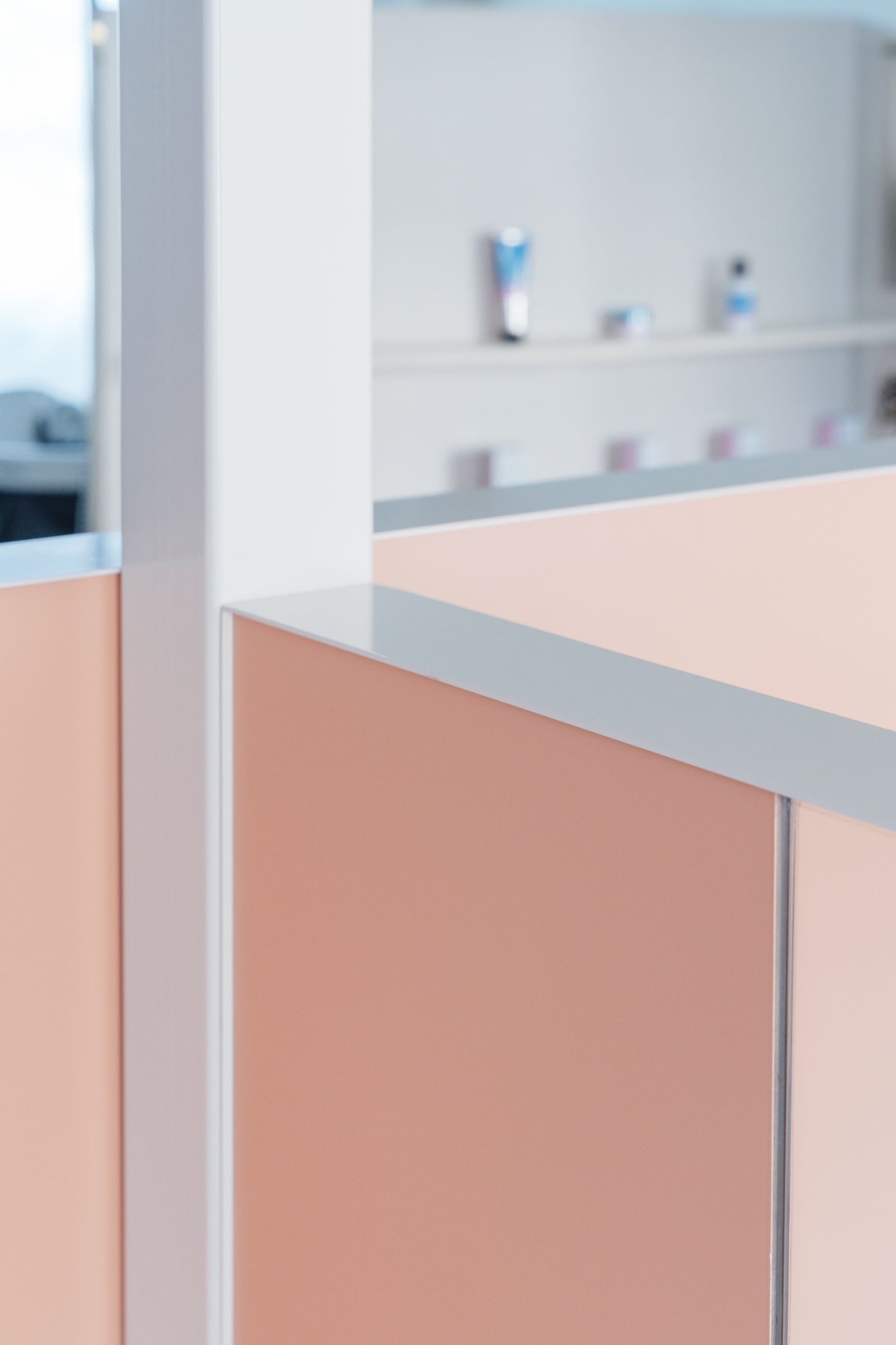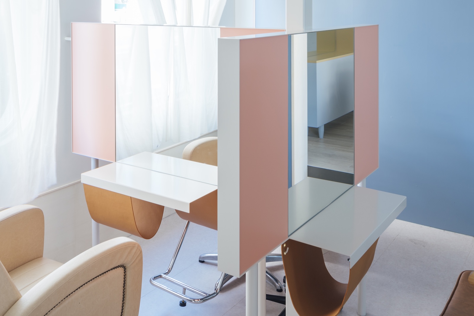 ミラーのデザインや個室の雰囲気もそれぞれ変え、子どもと一緒に入れる席、男性も座りやすい席、など多様な場を形成する。