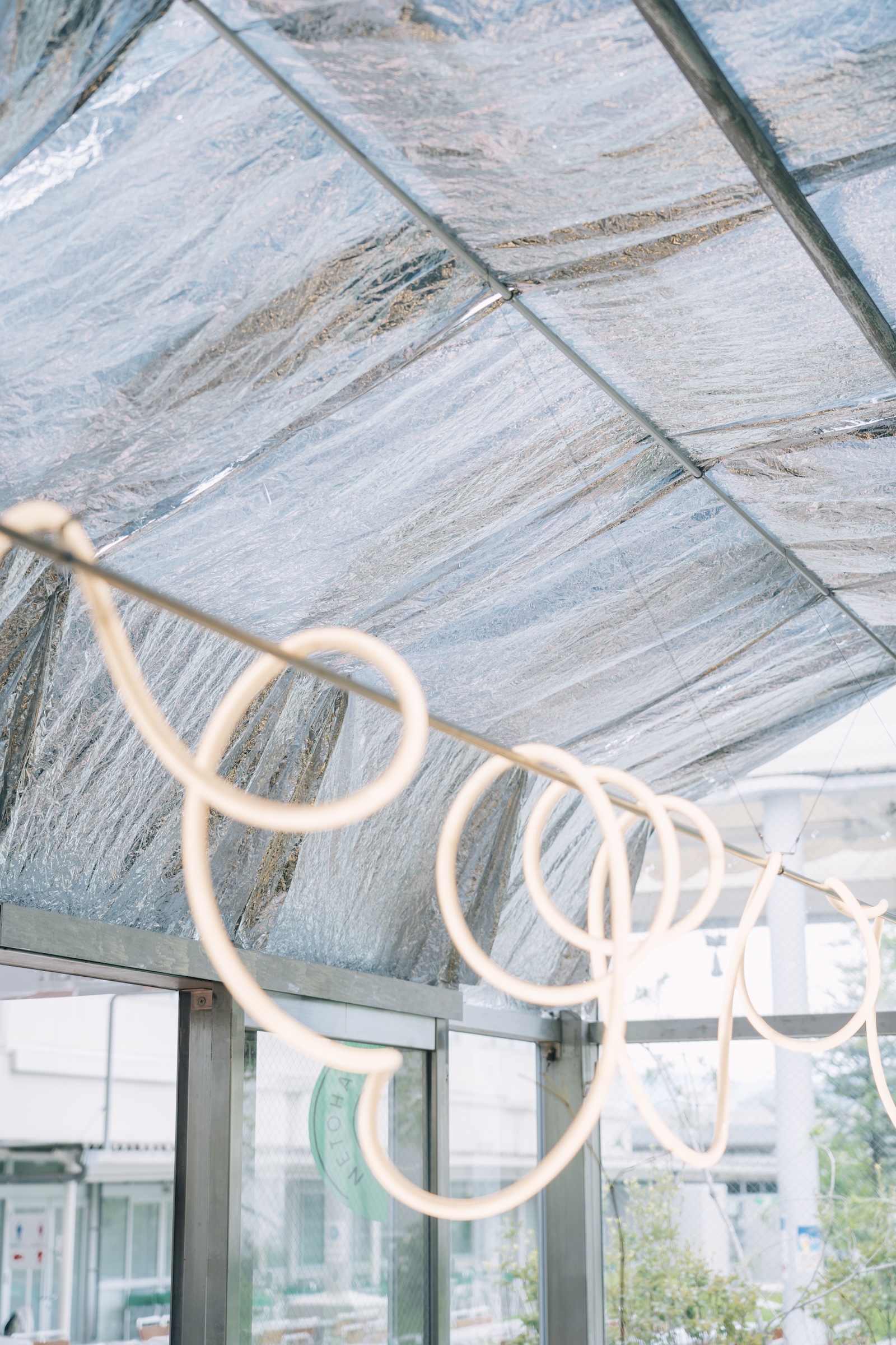 照明や遮熱シートをラフに配置し、この空間に入っただけでわくわくして特別な気持ちになれるようグラフィックも共に提案。