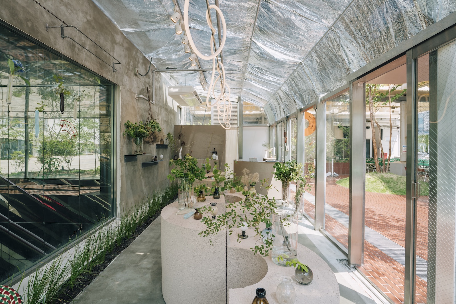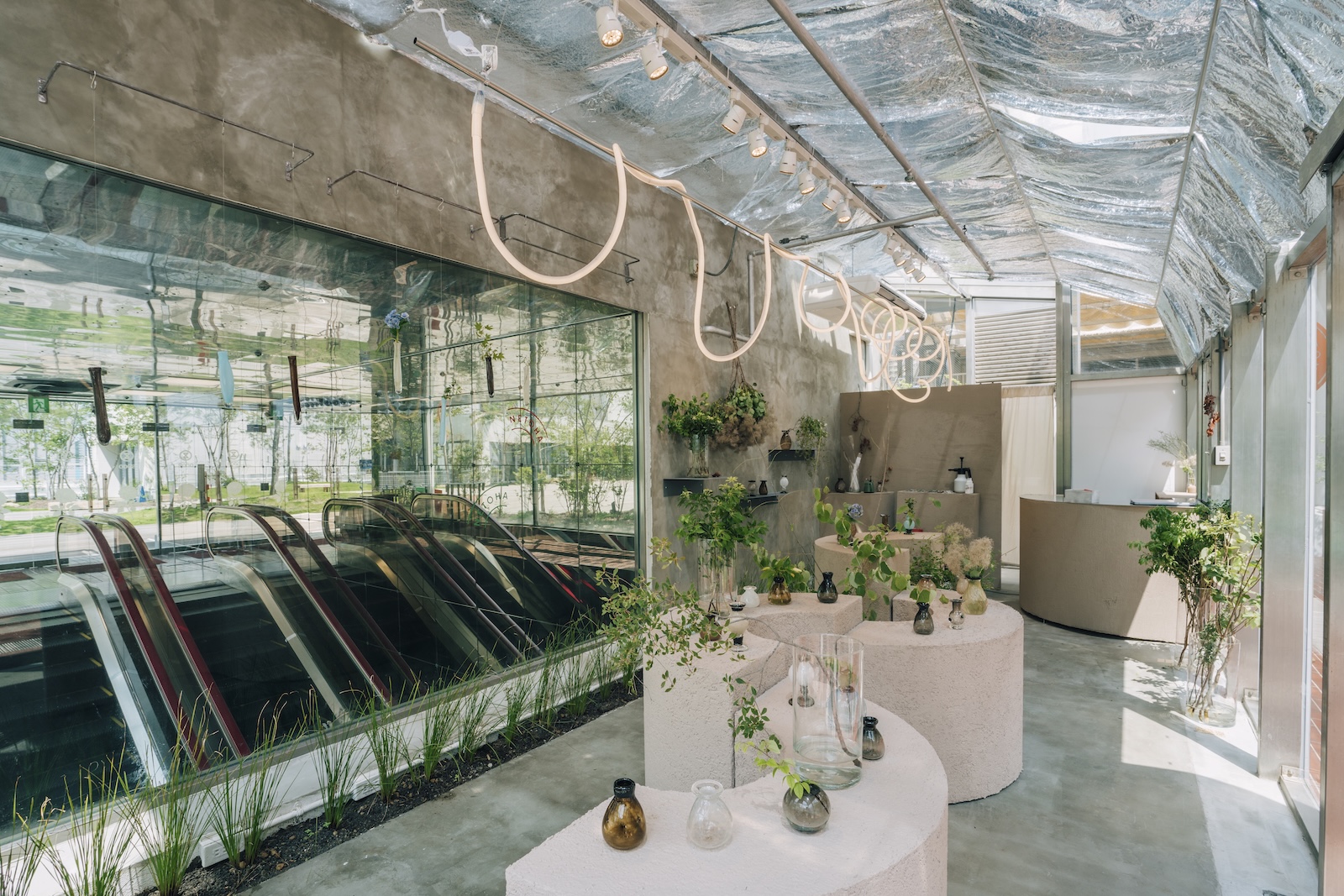 広島市中心街、地域に長く愛される広島そごうの屋上にできた、枝と一輪挿しの専門店。